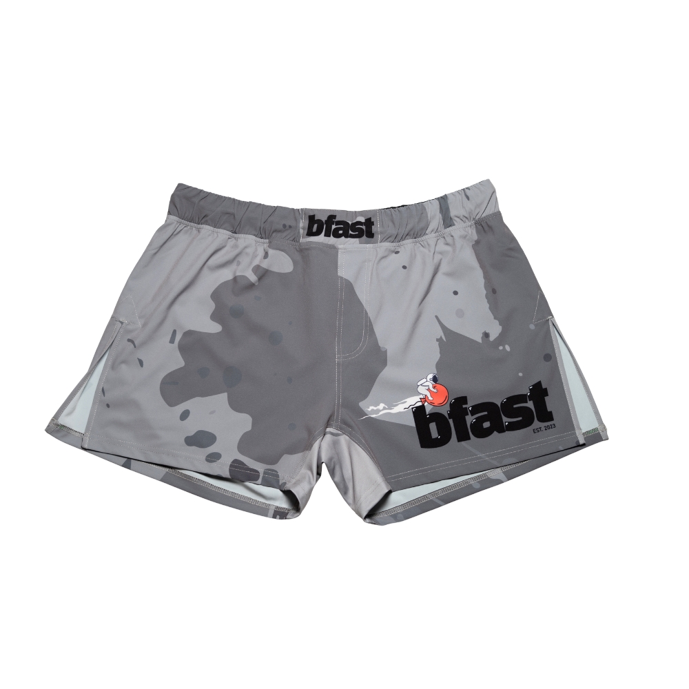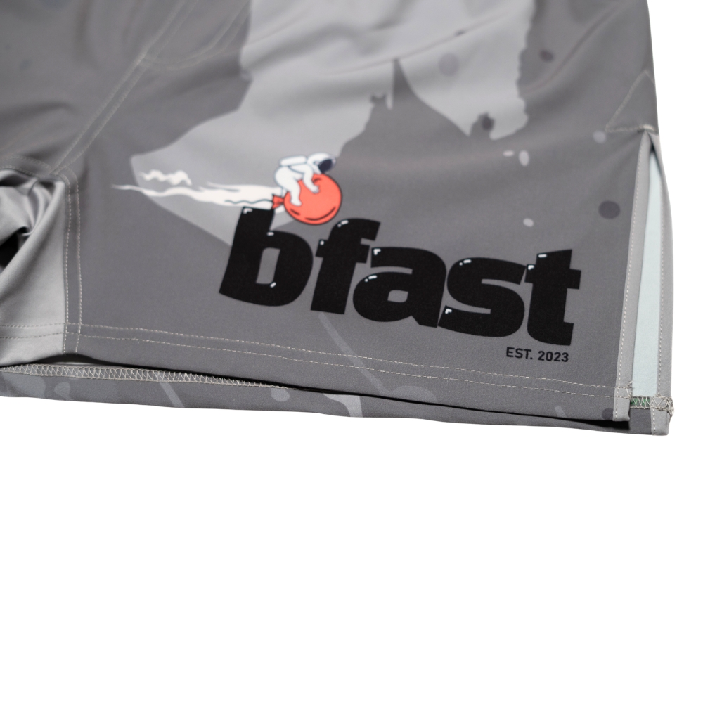 The Moon Rock shorts strip it back with a clean grey camo design—sharp, understated, and made to move. Finished with our signature astronaut detail and bold BFAST branding, keeping the identity without overdoing it.
