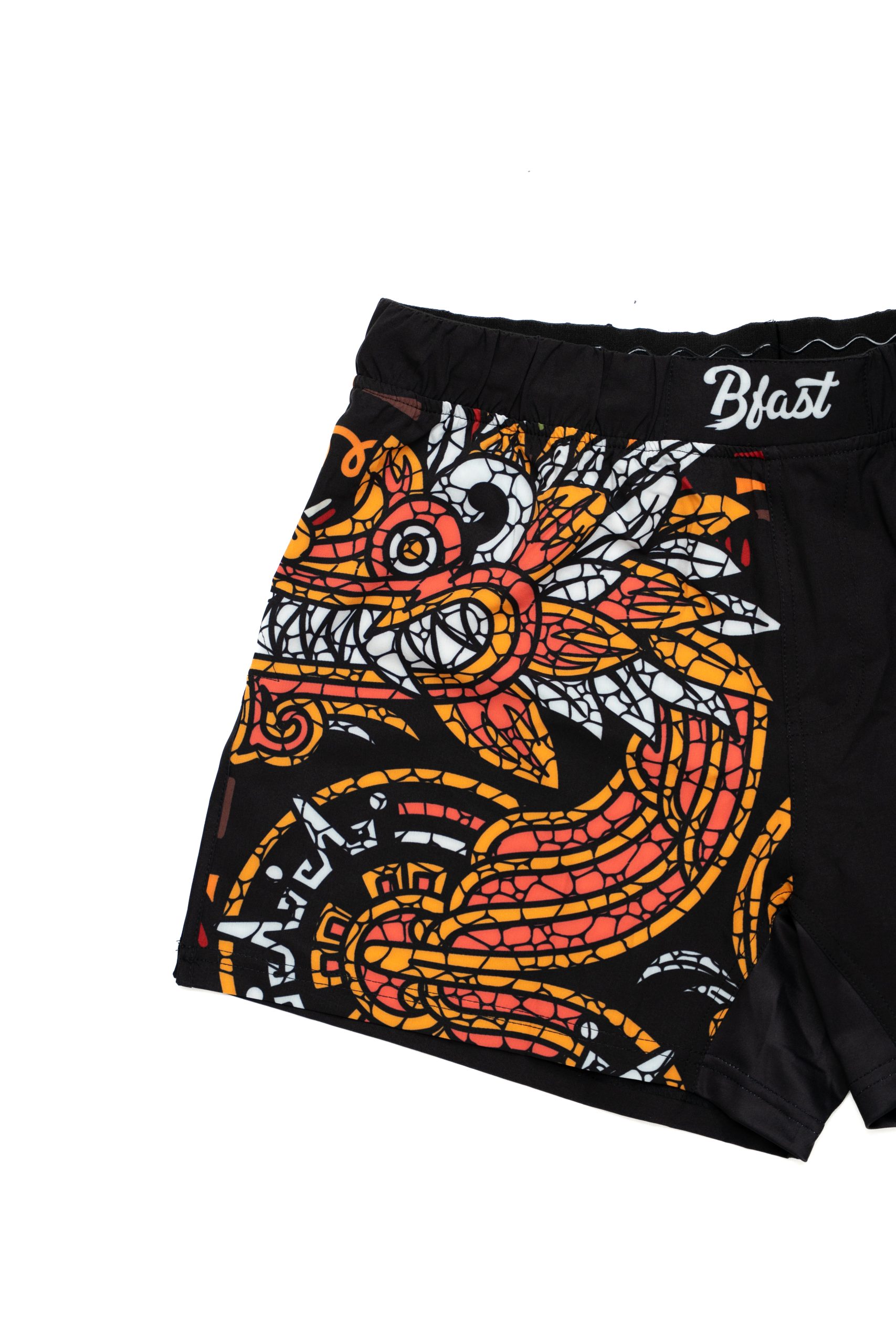 These limited-edition BFAST Aztec shorts pay tribute to the fighting spirit of Latin American warriors — fierce, agile, and fearless. Featuring a bold mosaic-style dragon design and tribal art detailing, they blend cultural power with technical performance. Made with moisture-wicking, tear-resistant fabric and reinforced side slits for maximum mobility, they’re made to dominate in MMA, Muay Thai, Jiu-Jitsu, or whatever arena you step into.